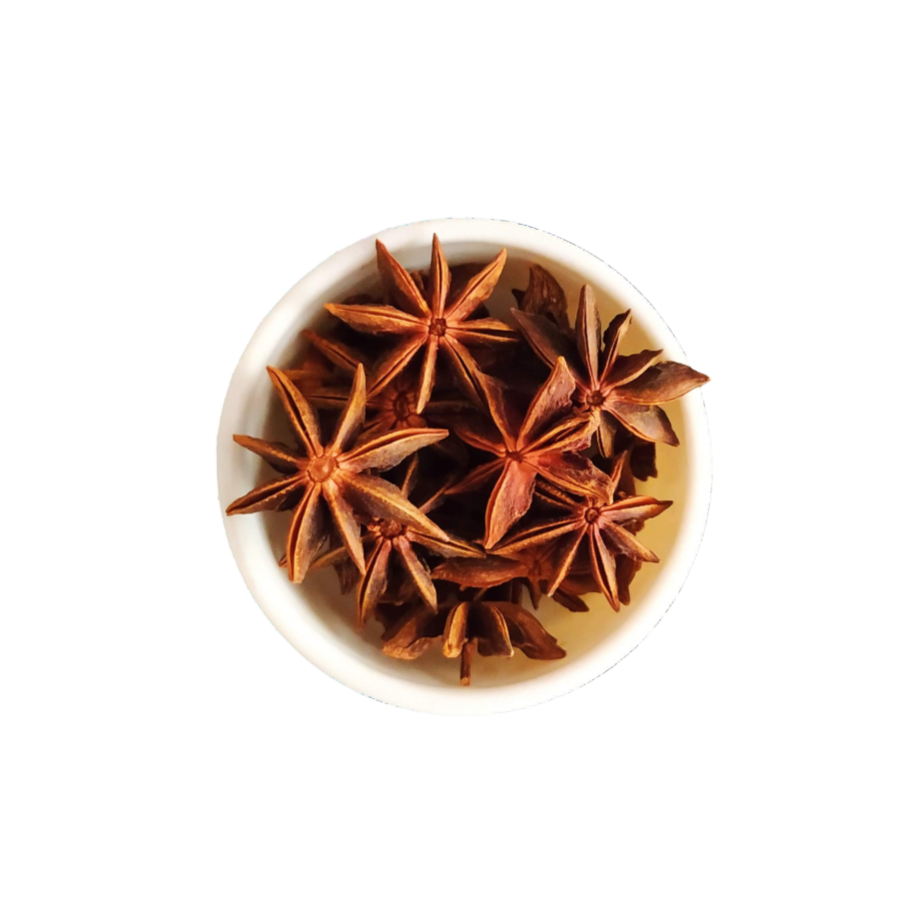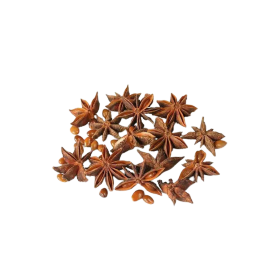 Chakri Phool, also known as Star Anise, is a spice with a distinct star-shaped appearance and a strong licorice-like flavor. It is commonly used in Asian cuisine, particularly in soups, stews, and braised dishes, as well as in teas and infusions for its aromatic qualities.