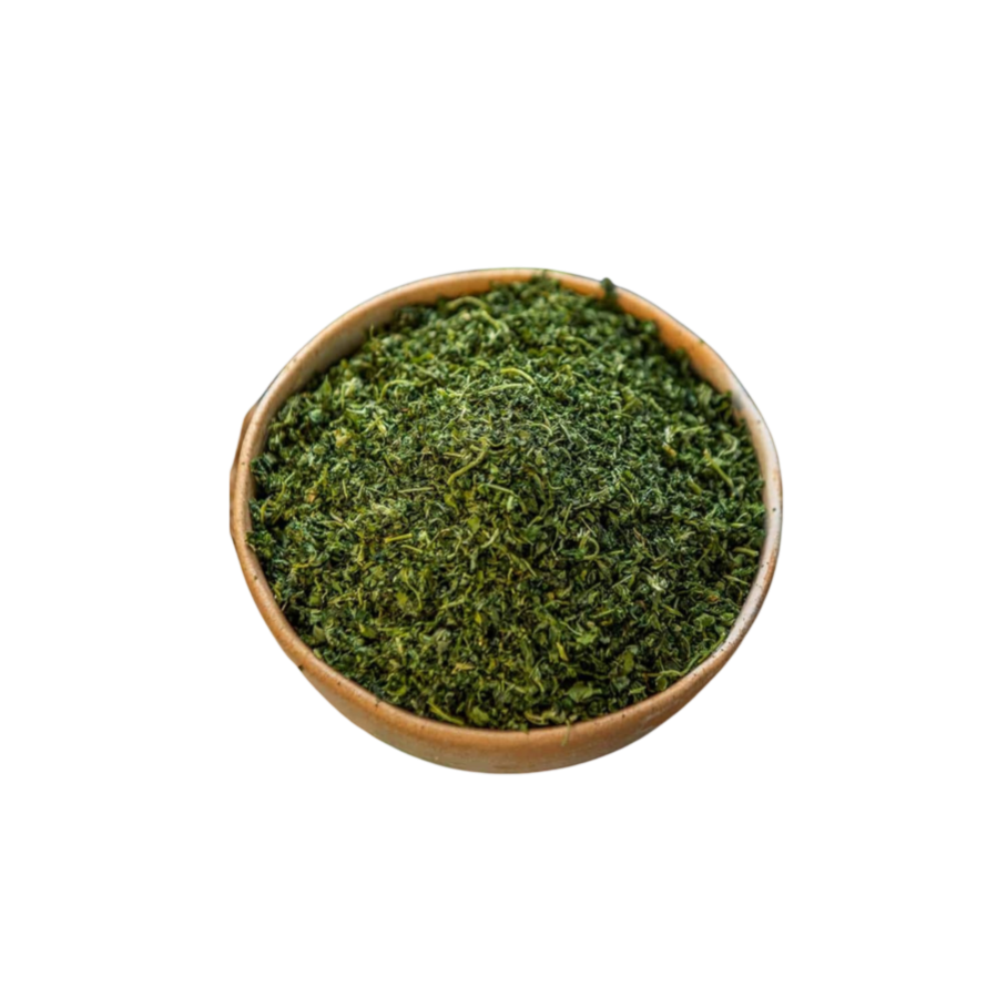 Dried fenugreek leaves, also known as kasuri methi, are the dried leaves of the fenugreek plant. They have a strong, slightly bitter flavor with hints of sweetness and a distinct aroma. Widely used in Indian cuisine, dried fenugreek leaves are often added to curries, dals (lentil dishes), and vegetable preparations to impart a unique flavor and aroma.