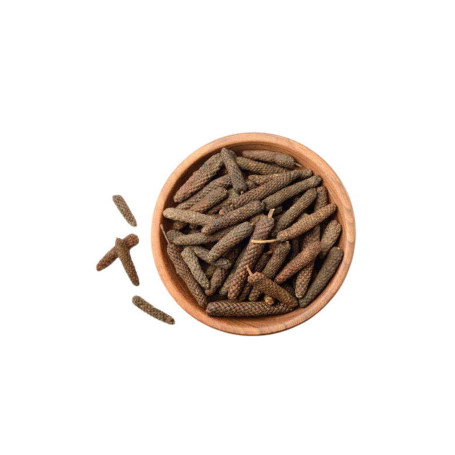 A traditional spice from Indian cuisine, also known as long pepper, characterized by its elongated shape and mild spicy flavor. Used in spice blends and medicinal preparations, pimpli adds a warm and pungent aroma to dishes, enhancing their depth of flavor.